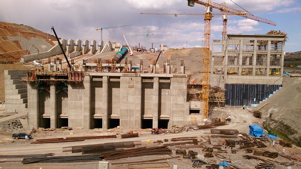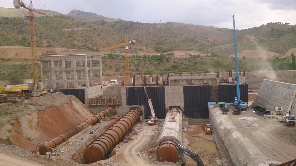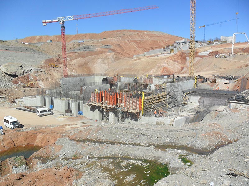 - Fabrication and installation of the prefabricated beams of the spillway and intake structure.