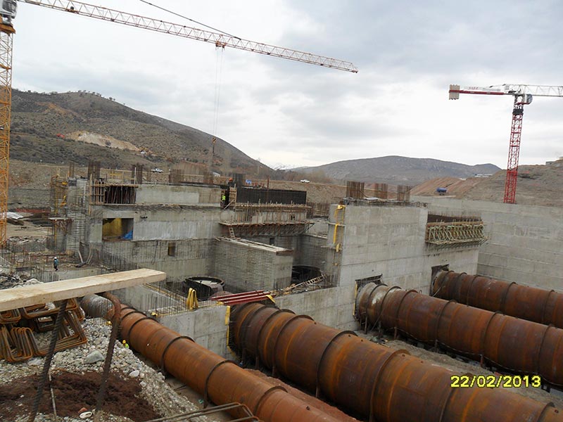 - Form, concrete and iron works of the Central Building (height: 46 m), tailwater canal, stilling basin, power conduit and discharge canal.